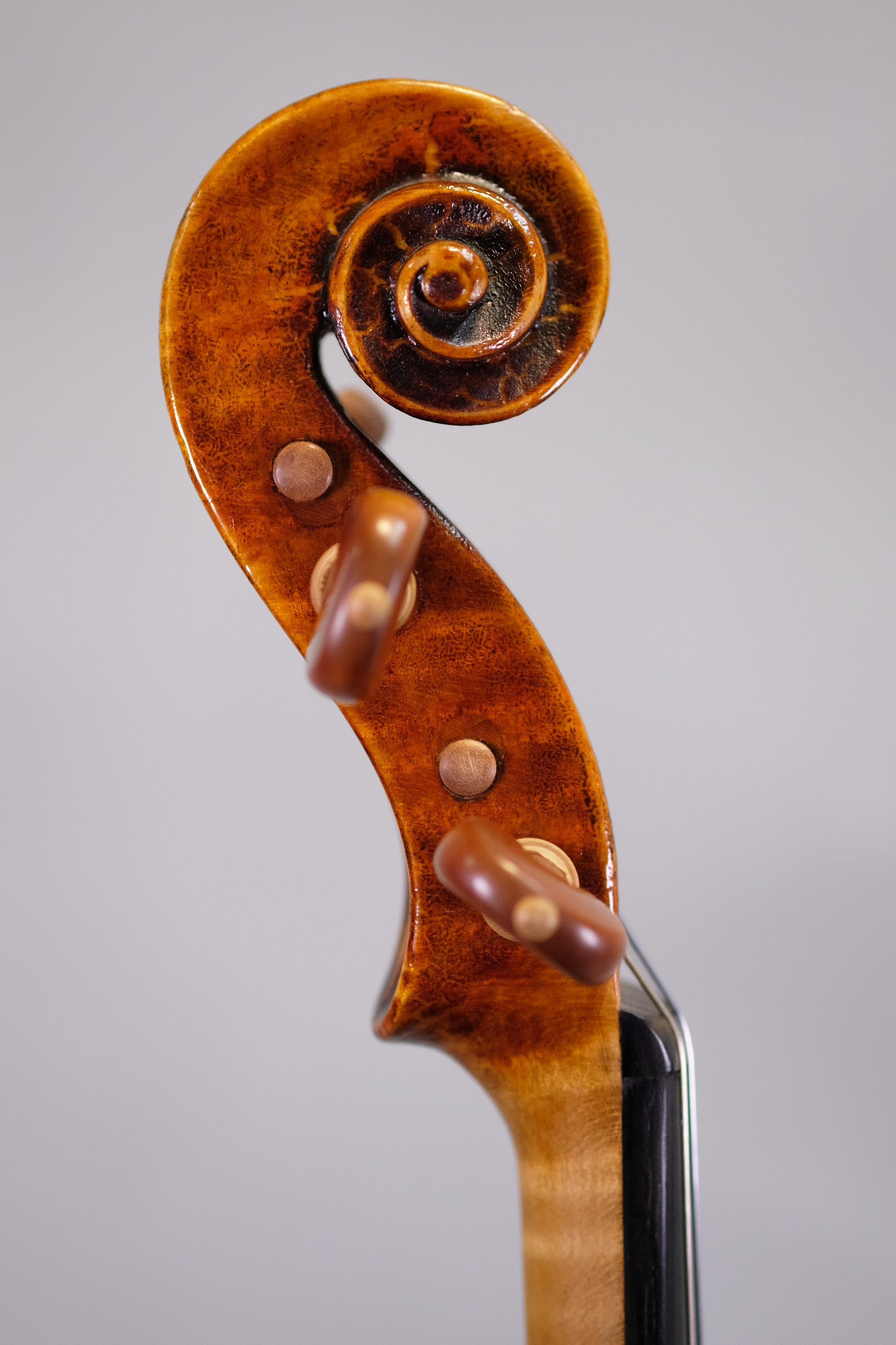 Cremonaなどのオールド楽器を規範に、独学で楽器製作を学んだとされています。